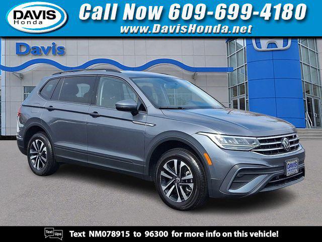 2022 Volkswagen Tiguan 2.0T S AWD 184hp 2.0L turbo, 8-speed auto with AWD, ~25 MPG combined, 37.6/73.4 cu ft cargo, heated power driver seat, dualzone climate, touchscreen with AppConnect, keyless start, blindspot & lanekeep assist, rear crosstraffic alert, and 1,500lb towing. Call today to scheeedule a test drive in Burlington NJ 609-699-4180Price includes all costs to be paid by a consumer, except for licensing costs, registration fees, and taxes. Davis Honda is not responsible for typographical errors. See salesperson for complete details.